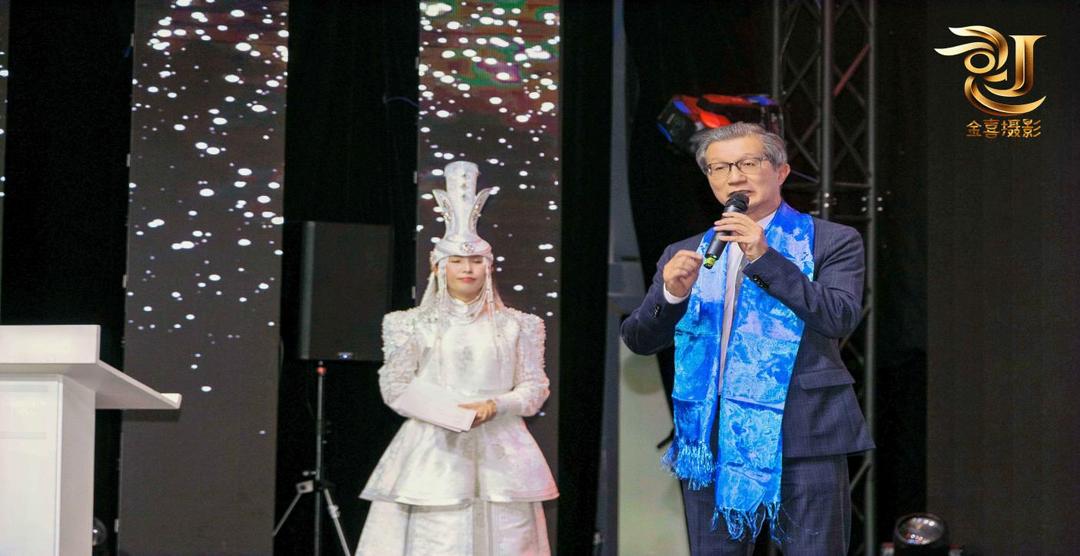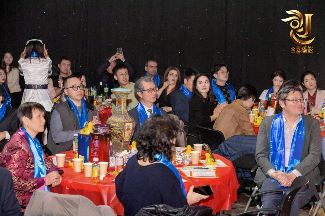 协会举行了富有蒙古族传统特色的敬献哈达仪式。在蒙古族的礼仪中,敬献哈达象征着对客人最崇高的敬意与祝福,Sophia 会长、张岩副会长为今晚到场的所有嘉宾敬献蓝色的哈达。
