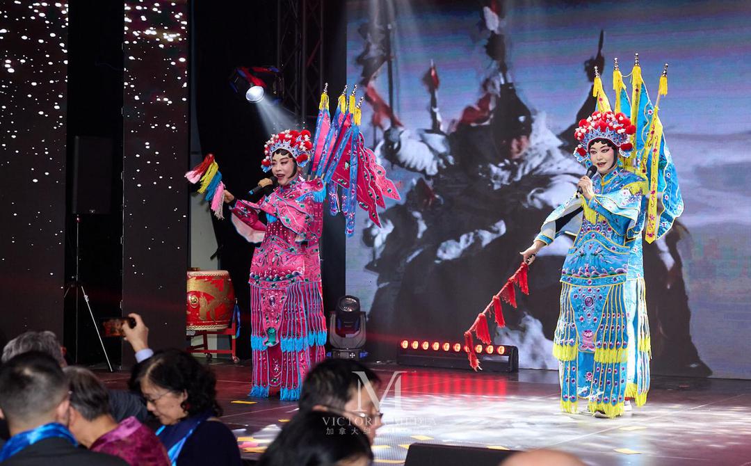 文艺节目精彩纷呈。红宝石艺术团带来舞蹈《吉祥四季》,九州艺术中心主席张旭东演唱歌曲《赞歌》,史松坤、茉莉、一璇表演京剧联唱《定军山》《双阳公主》。金梦艺术中心表演蒙古舞《永远的赞歌》,加拿大九州艺术中心Summer 等演员带来古风歌舞《我的新衣&成双》,协会理事魏榛表演蒙古顶碗舞与筷子舞,技艺精湛,赢得阵阵掌声,观众看的如痴如醉。