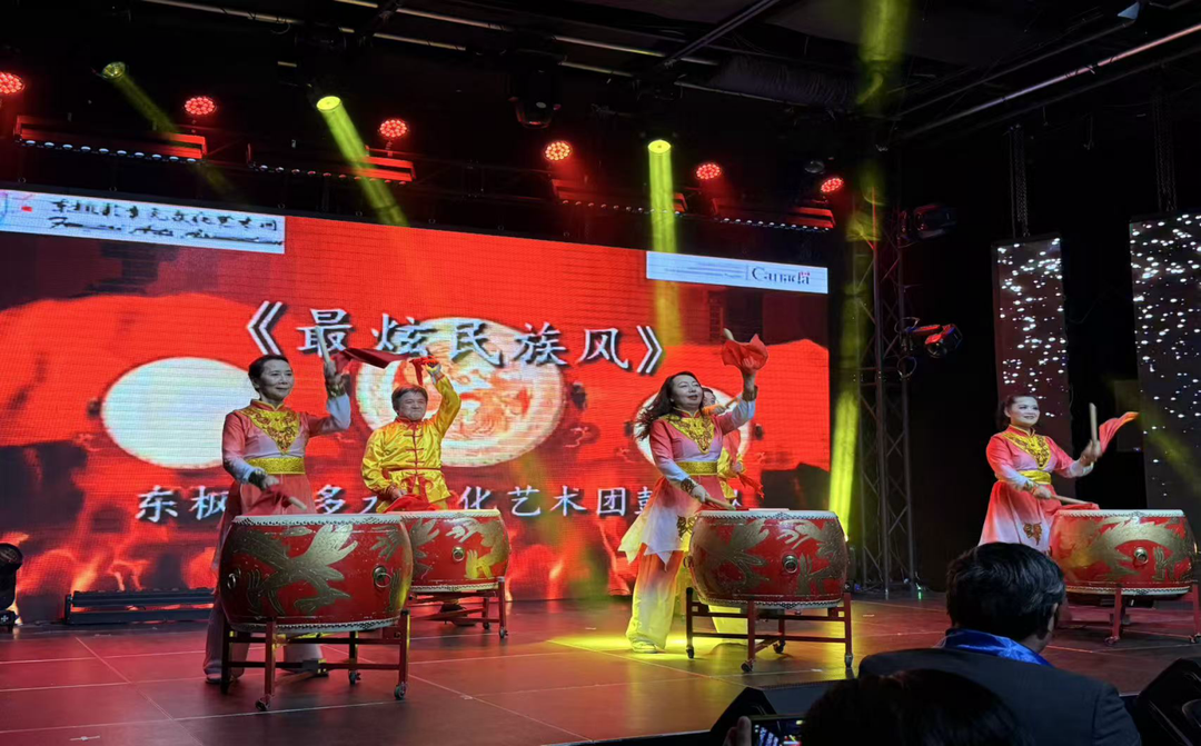 东枫彩艺术团震撼大鼓开场舞《最炫民族风》中隆重开启帷幕