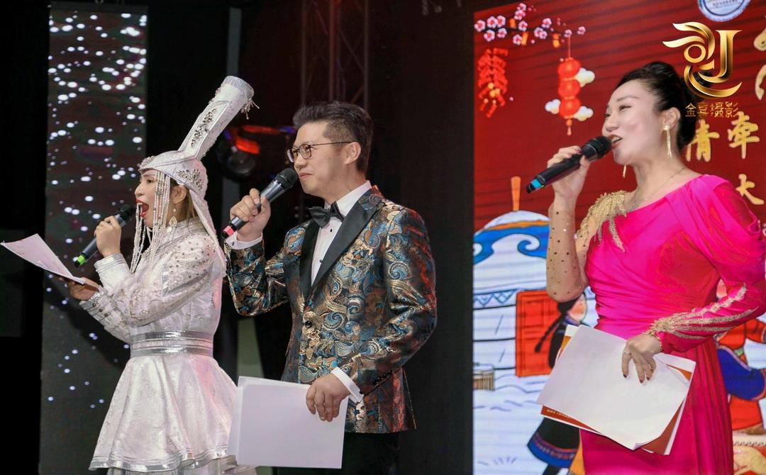 蒙,汉,英 三语主持人 叶婷婷,徐华, 阿荣(从右边向左)