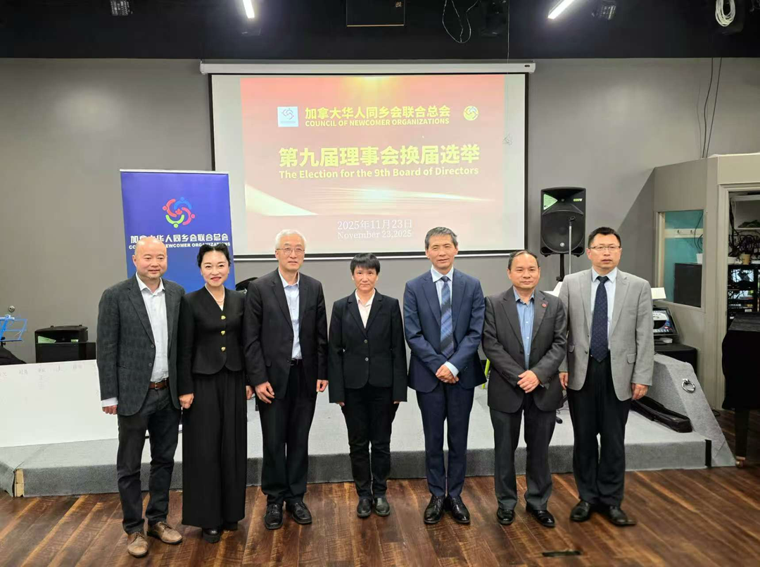 2025年11月23日,加拿大华人同乡会联合总会举行了新一届理事会的换届选举,同乡会联合总会理事单位的会长及代表参加了选举大会。